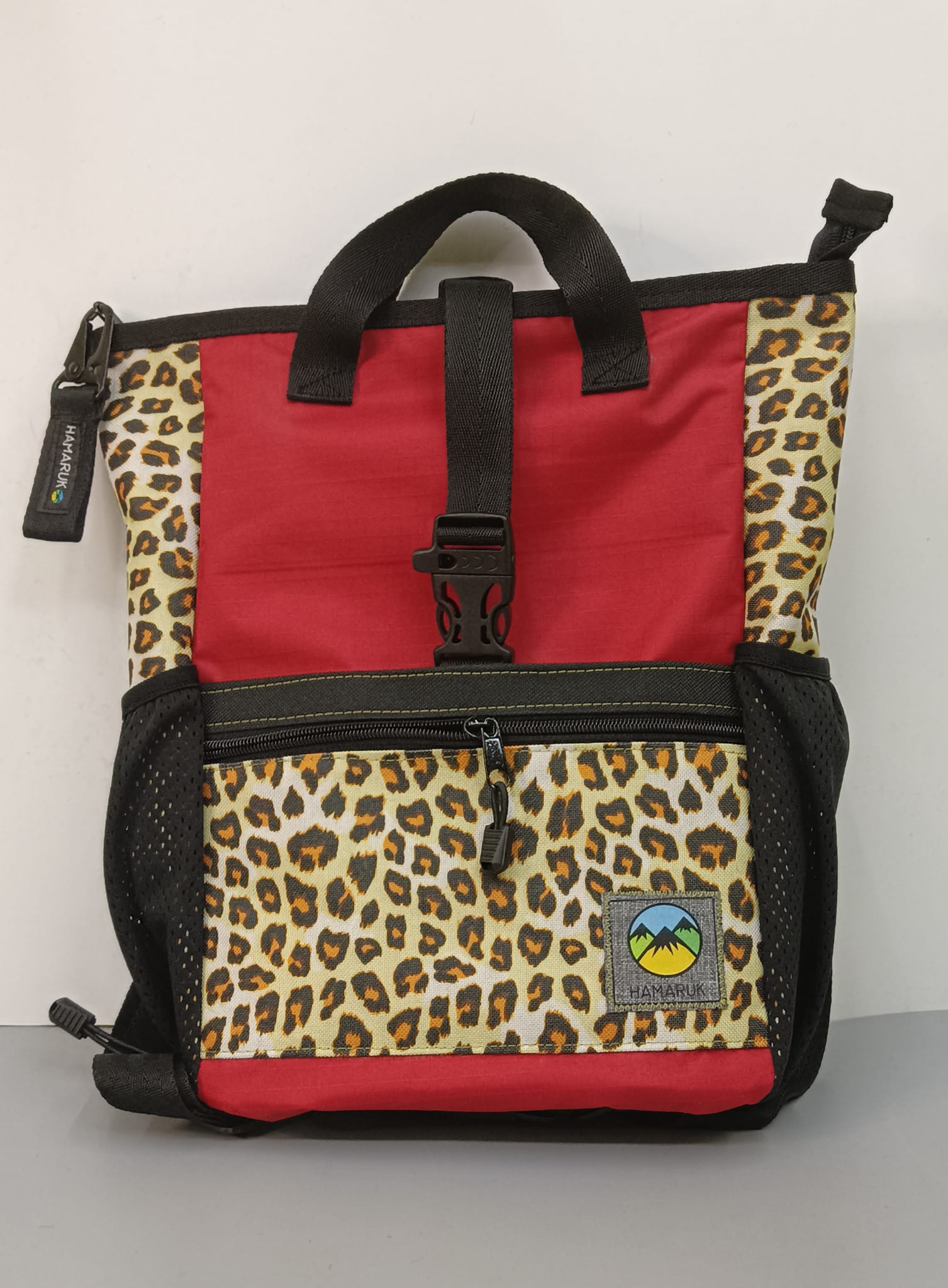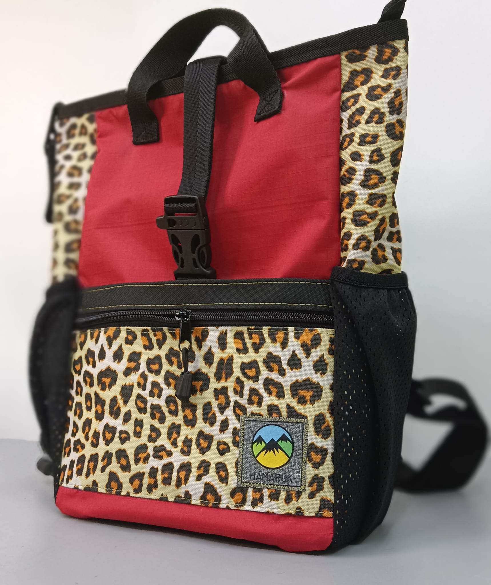 Mochila de Aventuras Atenea Leopardo y Rojo